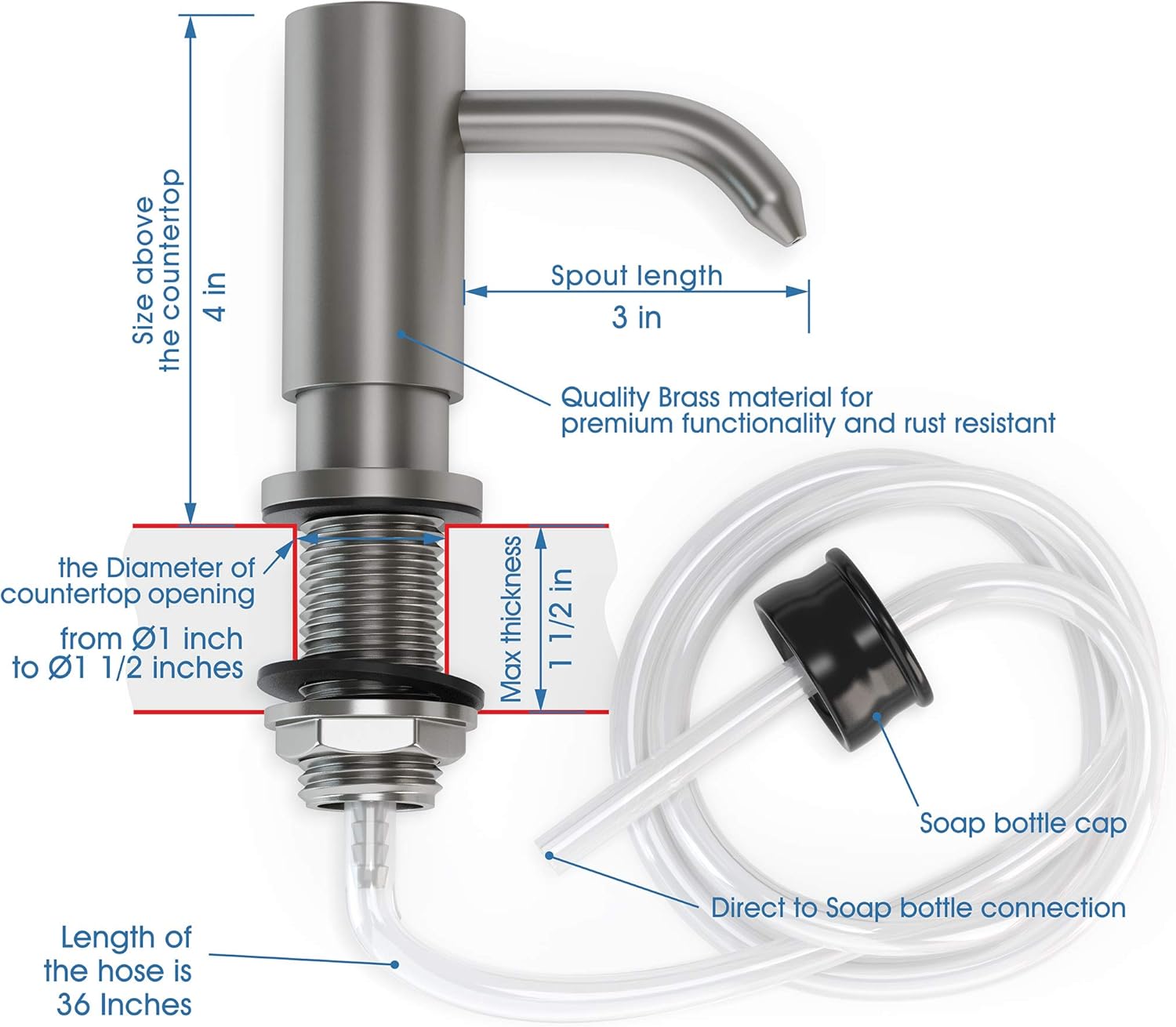 The pump head can be rotated 360 degrees to meet the hand washing position at any time. Why is my foaming soap dispenser not working? Our kitchen sink soap dispenser has been broken for years, so we had a big bottle cluttering up the countertop instead. After you pump some soap out it still drips. Sink soap dispenser soap extension tube kit installation guide.